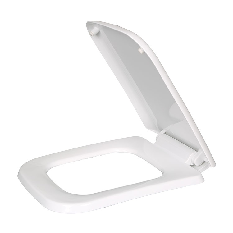 WC desko pravokotne oblike pokriva pravokotna prevleka WC deske. Njegova oblika se prilagodi povečani straniščni školjki, kar daje uporabniku udobno mesto za sedenje.